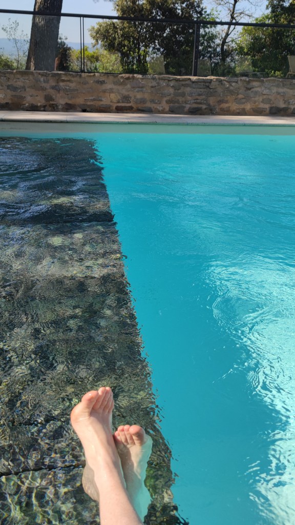 Et promis, on a beau être dans les arbres et en pleine campagne, on ne peut pas s’ennuyer ! Nous avons commencé par la piscine. Quand nous sommes partis de la maison, je n’avais pas fait attention que le site indiquait que la piscine était chauffée, j’avais donc pris mon maillot de bain mais sans conviction… Et ! Surprise ! Une eau à 30 degrés m’attendait !
