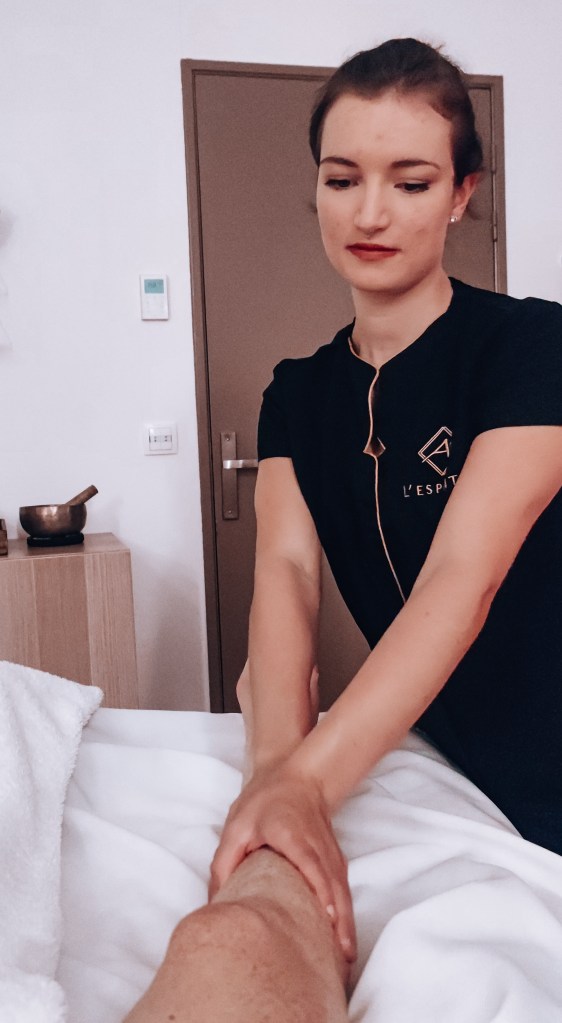 Le massage est réalisé avec les produits Cinq Mondes, il offre une détente absolue (Axelle a bien ciblé mes tensions) et une véritable hydratation pour la peau. Le massage de 30 min est pratiqué sur 2 zones, j’avais choisi le dos et les jambes, les zones les plus tendues pour moi.